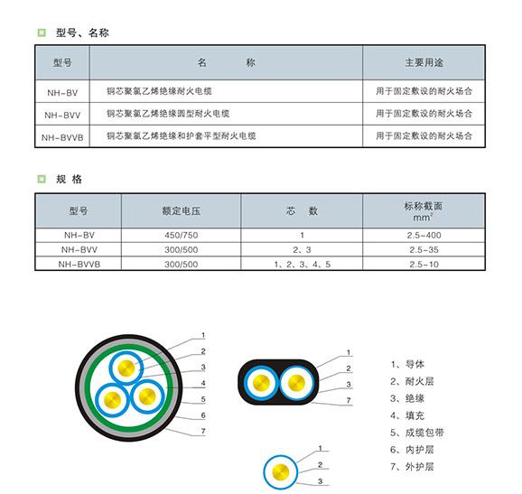 注:以上型號(hào)的聚氯乙烯絕緣電纜(電線),本廠還可以生產(chǎn)阻燃型、耐火型(B系列),在以上型號(hào)前面加上Z (A.B.C.D)。