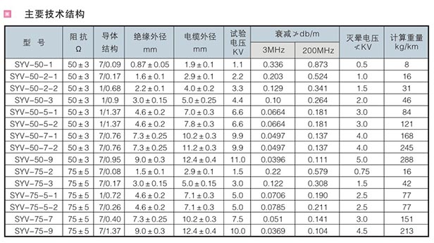 射頻同軸電纜產(chǎn)品技術(shù)參數(shù)