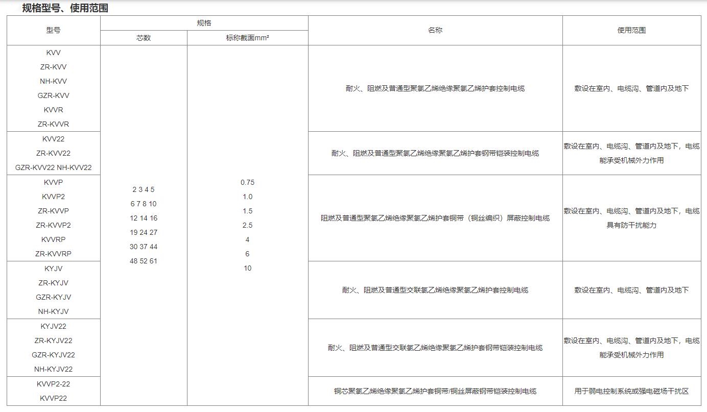 額定電壓450/750V聚氯乙烯絕緣控制電纜